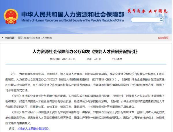 《技能人才薪酬分配指引》。