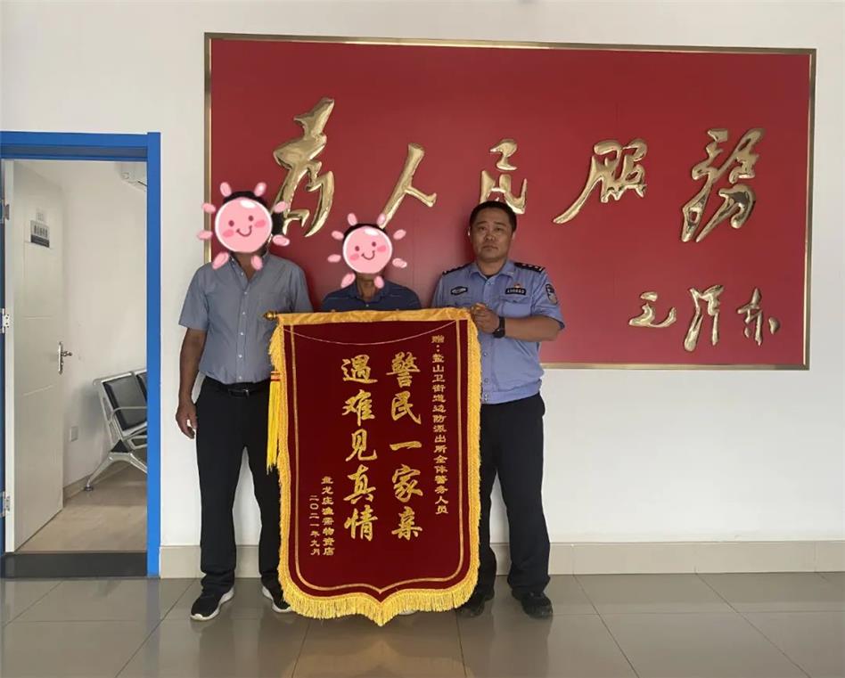 9月25日,家住鰲山的顧先生將一面書有“遇難見真情 警民一家親”的錦旗送到海警岙山派出所,表達對海警岙山派出所民警冒著風雨幫自己找回漁船的感激之情。