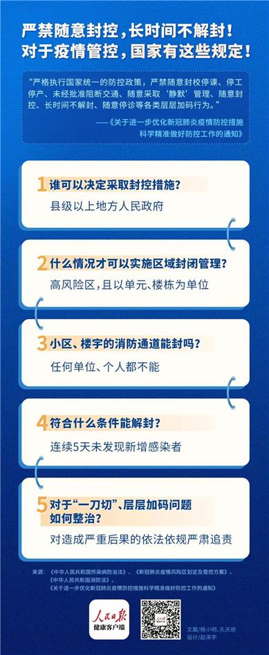 [/b][b]嚴(yán)禁隨意封控,長時間不解封!對于疫情防控,國家有這些規(guī)定!國務(wù)院應(yīng)對新型冠狀病毒肺炎疫情聯(lián)防聯(lián)控機(jī)制綜合組發(fā)布的《關(guān)于進(jìn)一步優(yōu)化新冠肺炎疫情防控措施 科學(xué)精準(zhǔn)做好防控工作的通知》的“二十條”措施中提到,“嚴(yán)格執(zhí)行國家統(tǒng)一的防控政策,嚴(yán)禁隨意封校停課、停工停產(chǎn)、未經(jīng)批準(zhǔn)阻斷交通、隨意采取‘靜默’管理、隨意封控、長時間不解封、隨意停診等各類層層加碼行為。”