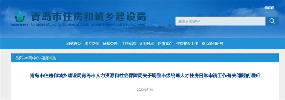 7月18日,青島兩部門聯(lián)合發(fā)布關(guān)于調(diào)整市級統(tǒng)籌人才住房日常申請工作有關(guān)問題的通知!