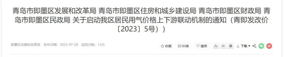 8月10日起執(zhí)行!即墨天然氣價格調(diào)整了!上調(diào)0.23元/m3