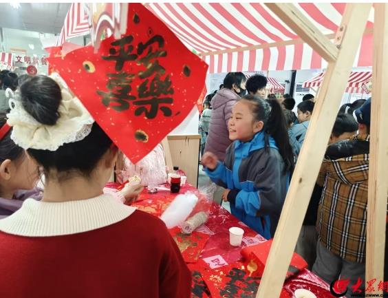 文化展示區(qū)成為“非遺”傳承的小課堂。精巧的即墨花邊在燈光下流轉(zhuǎn)著細(xì)膩光澤,銀針穿梭間的匠心工藝讓孩子們駐足驚嘆。古樸的工具蘸上顏料,在紙上印出寓意吉祥的花紋,這門傳承兩百余年的技藝,以直觀可感的方式讓孩子們觸摸到本土文化的溫度。