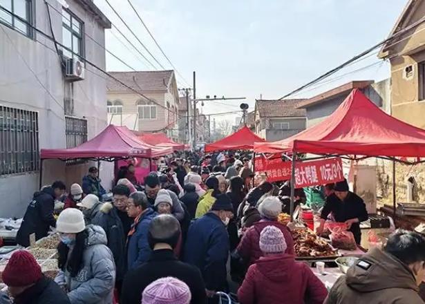 年關(guān)漸近,青島市即墨區(qū)鰲山衛(wèi)街道海洋大集年味十足,借著藍谷快線的便利,迎來客流高峰,街巷內(nèi)人頭攢動、煙火升騰。
